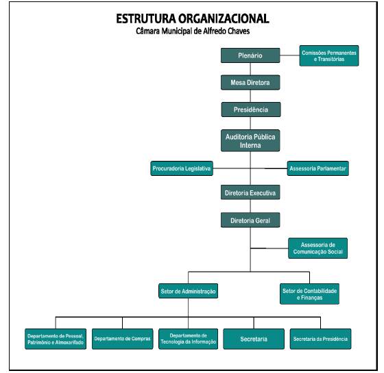 Art. 1º A Câmara Municipal de Alfredo Chaves, para a execução de serviços de sua responsabilidade, compõe-se dos seguintes órgãos: