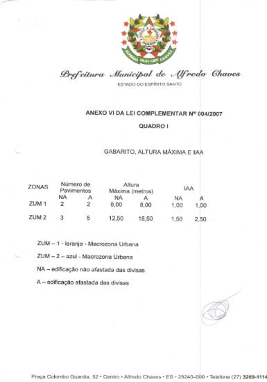 O PODER EXECUTIVO DO MUNICÍPIO DE ALFREDO CHAVES (ES), faz saber que o Poder Legislativo do Município de Alfredo Chaves (ES) aprovou e o Chefe do Poder Executivo sanciona a seguinte Lei Complementar: