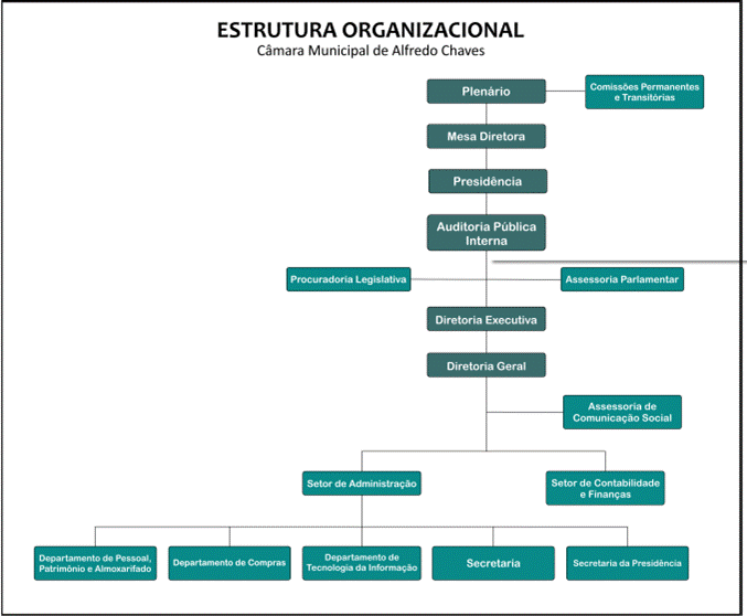 gráfica da estrutura Administrativa da Câmara Municipal está no Organograma