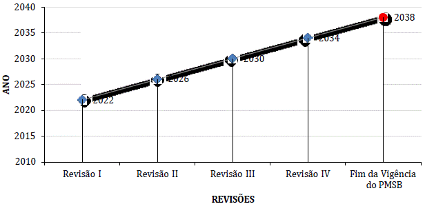Art. 11 A revisão do Plano Municipal de Saneamento Básico será realizada a cada quatro anos a partir da data da sua aprovação mediante publicação desta Lei, e deverá ser, obrigatoriamente, submetida à audiência pública e à consulta pública, sob pena de nulidade.
